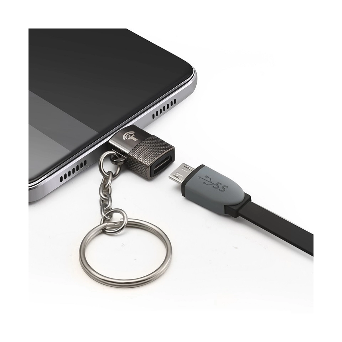 Breloc chei adaptor Micro USB la Type - C OTG, Rocketek Profesional, pentru tablete si telefoane mobile, negru