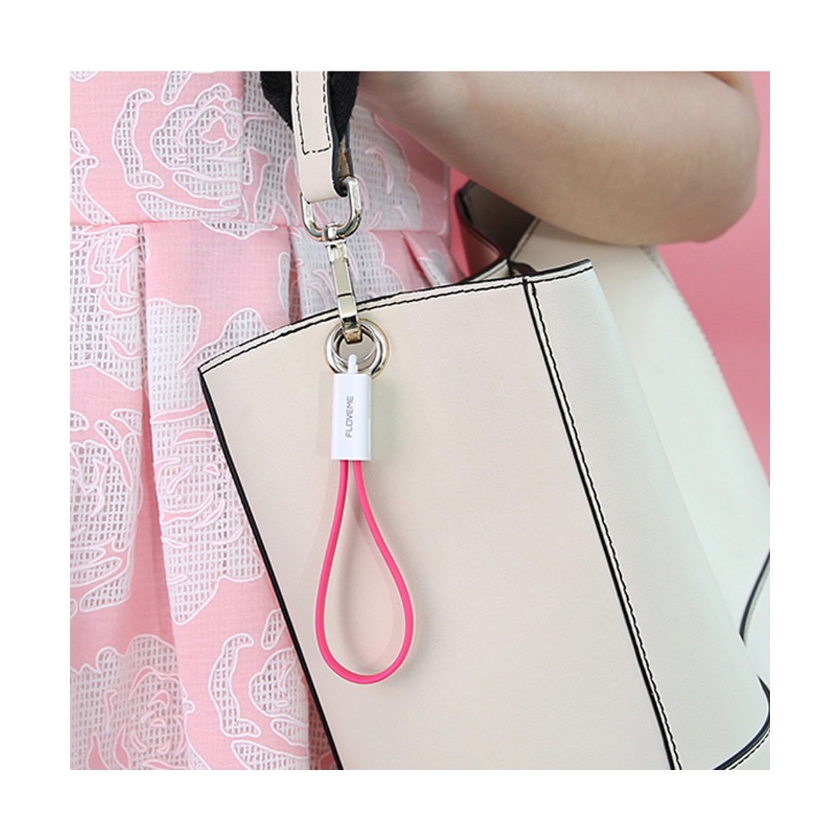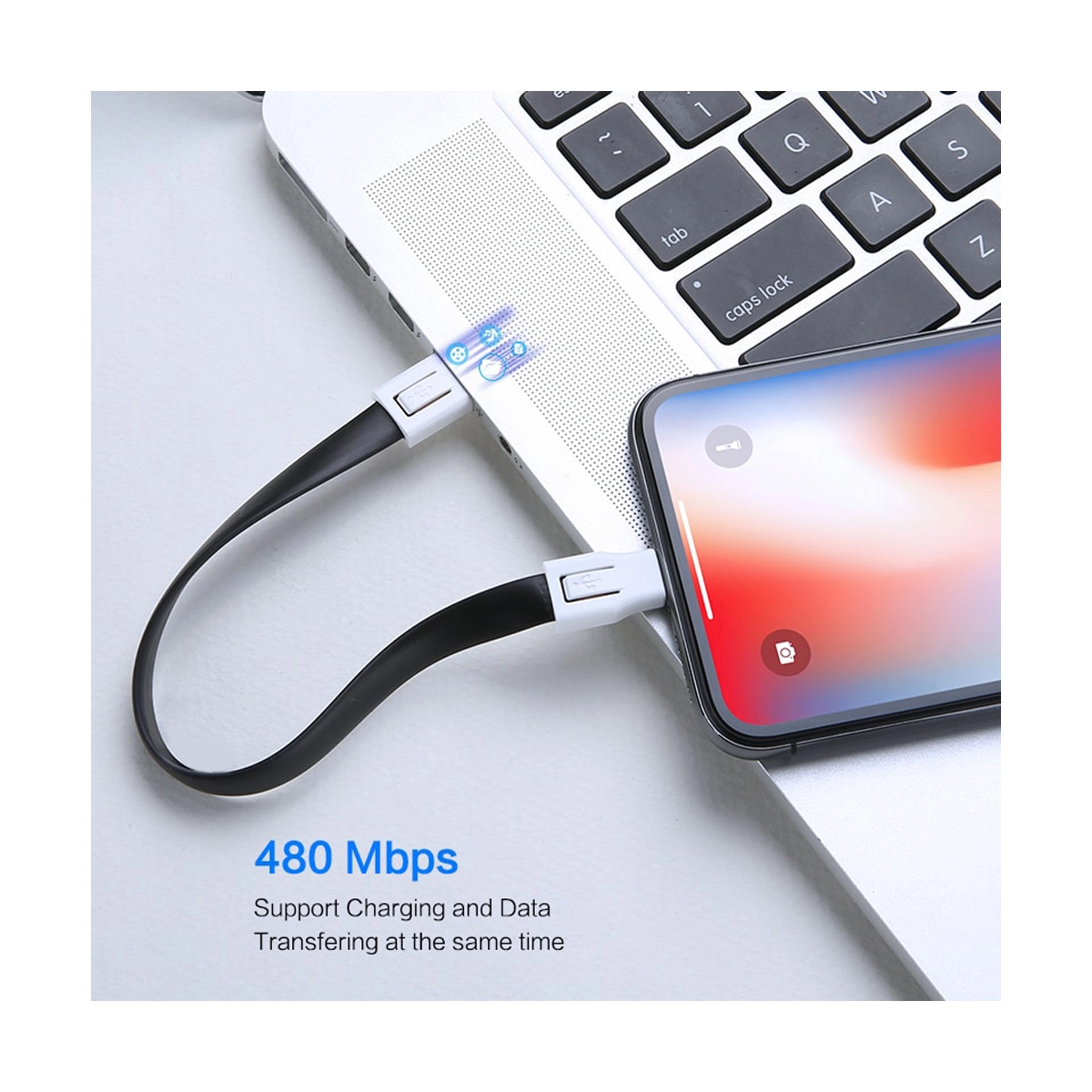 Cablu breloc pentru incarcare iPhone sau iPad, USB si micro USB, negru -