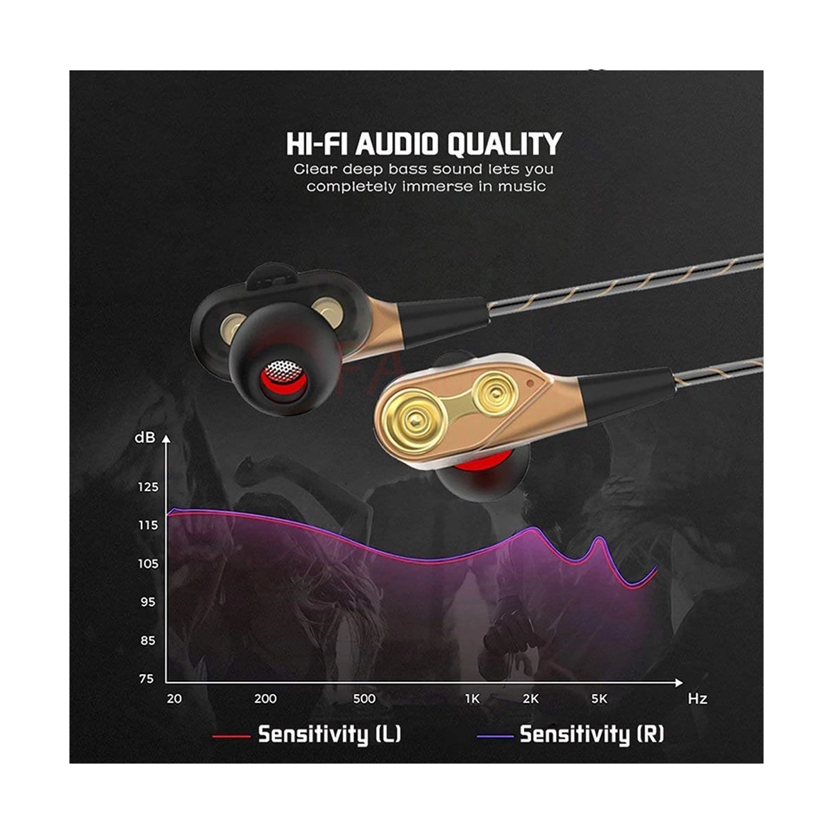 Casti stereo aurite cu microfon si control volum, Fangtuosi Earbuds, cablu flexibil, jack smartphone telefon tableta, gold