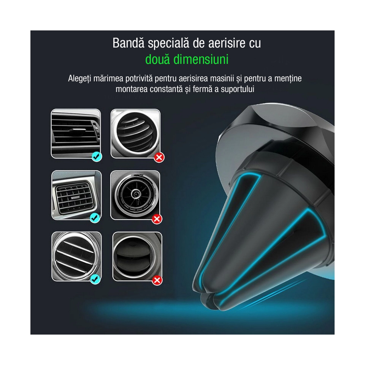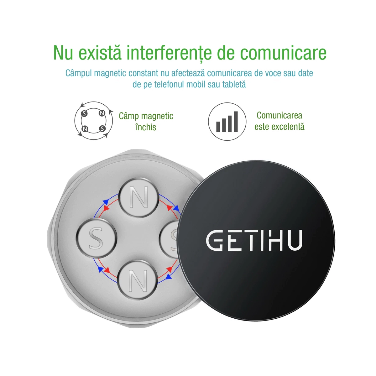 Suport auto Getihu cu magnet pentru telefoane mobile si tablete pana in 7 inch, Negru